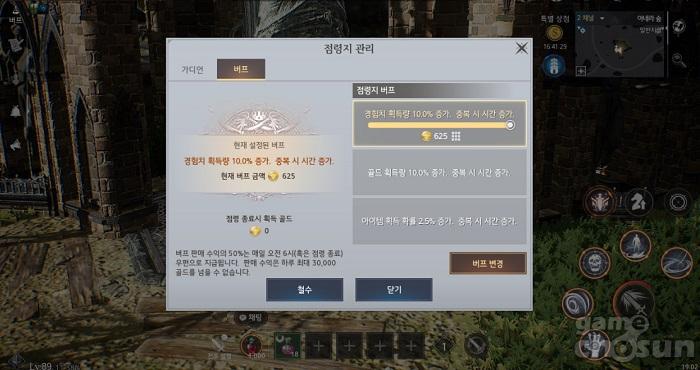 점령지를 지키는 AI 캐릭터는 이용자가 설정한 물약 및 스킬, 장비가 반영되므로 방어적인 세팅을 통해서 전략적으로 지역을 수비할 수 있다. 다른 이용자가 점령한 사냥터를 이용하는 다른 유저도 버프를 활용 가능하다. 각 지역 점령 시 점령 유저의 외형이 반영된 동상이 세워지는데, 비점령 유저는 해당 동상을 방문해 골드를 지불하고 각종 버프를 구입해 적용할 수 있다.