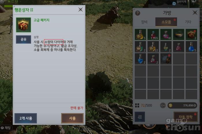 단, 거래소에서 다른 이용자가 등록한 물품을 구매 시에는 레드다이아가 필요한데, 이또한 무과금 유저라고 할지라도 자신이 게임을 플레이하면서 획득한 높은 가치의 아이템을 거래소에서 판매해 레드다이아를 확보하고, 해당 레드다이아로 거래소 아이템을 구입하는 것이 가능하다.