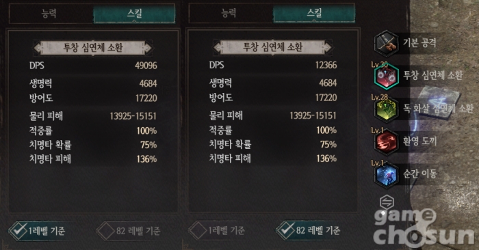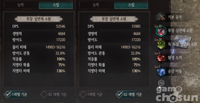 레벨 기준 별로 DPS 상승치가 다르다 = 게임조선 촬영