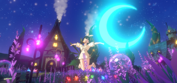 꾸쟁이: 가장 좋아하는 장소는 ‘마녀의 숲’입니다. ‘역시 블랙 덕후스럽다!’고 할지도 모르지만 사실 마녀의 숲은 굉장히 화려하고 밝은 오브젝트가 많습니다! 빛나는 초승달, 굴뚝의 연기, 후냐 석상, 반딧불, 라벤더까지 아름다운 요소가 굉장히 많습니다! 또 밤하늘도 굉장히 아름답기 때문에 보스가 출현하는 탁 트인 장소에서는 더욱 멋진 사진을 찍을 수 있습니다. 밤하늘을 배경으로 찍은 사진은 ‘클라인 슈미트’님께서 별자리를 수놓아 사진을 편집해 주셨습니다. 감사해요><