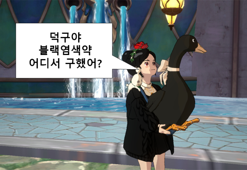 꾸쟁이: 제가 방송에서 보여드린 블랙 코디에는 블랙 염색약을 10개 정도 사용했어요! 거의 반년이란 긴 시간 동안 정말 힘들게 블랙 염색약을 모았어요. 블랙 염색약을 얻기 어려운 이유는 유물 전장, 코스튬 뽑기, 마지르의 행운 냄비에서만 구할 수 있고, 3가지 방법 전부 확정 보상도 아니고 확률에 따른 무작위 보상이라 얻을 수 있을지 알 수 없기 때문이에요. 하지만 별다른 방법이 없어 저도 위 3가지 콘텐츠에 오랜 시간을 투자하며 하나씩 코스튬을 블랙으로 염색했습니다!