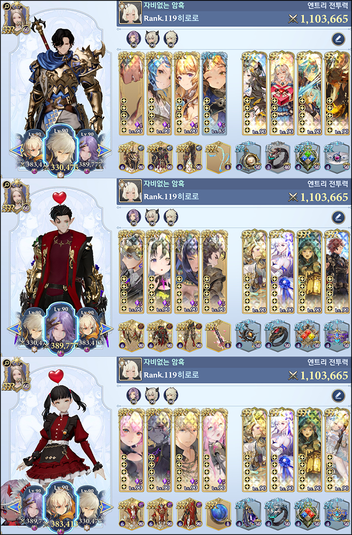 히로로 역시 흑광과 마찬가지로 연속 1위 기록을 이어갔다. 사용 파티는 이전과 동일한 준, 카르시온, 레온으로 전투력은 1,100,616으로 10,189가 늘어난 상황이다.