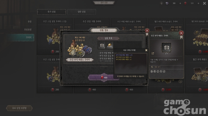 꾸러미를 구매해 축복 40% 지점을 노려보자 = 게임조선 촬영