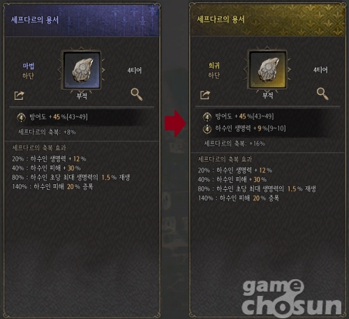 다만 희귀 등급, 원하는 옵션, 티어, 최적화된 신의 축복까지 네박자를 모두 맞추는 것은 꽤 힘든 일이다. 보통은 마법 등급 높은 티어의 원하는 옵션을 찾거나 아예 부적의 옵션은 포기하고 원하는 신의 희귀 등급 부적을 장착해 축복만 챙기는 등 타협하는 상태였다.