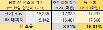 이것이 지난 1.02 대규모 업데이트 때 전투 수치 밸런싱을 거치며 몬스터의 원소 저항력이 대폭 상승해 평가가 바뀌었다. 현재 레벨 기준으로 계산하게 바뀐 표기 dps부터 관통 룬을 착용했을 때 더 오르며 실제 효율은 표기를 뛰어넘을 정도다. 이에 어느 정도 성장했다면 각 공격 속성에 맞는 관통 룬을 반드시 맞춰주는 편이 좋다.