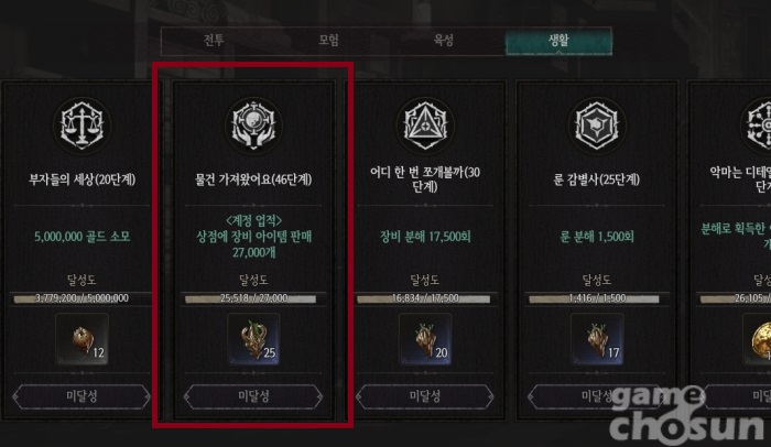 이 업적은 아쉽게도 현재 쉽게 달성할 수 없다. 조건이 장비 아이템 판매로 변경돼 더 이상 사고파는 식으로 달성하긴 힘들어졌다. 여기에 계정 업적으로 바뀌어 보상을 단 한 번만 받을 수 있게 됐다. 한 캐릭터로 달성하긴 너무 많은 횟수이니 느긋하게 에센스에 여유가 있을 때 사냥 후 얻은 장비를 판매해 주는 식으로 달성 횟수를 채워가는 것이 좋다.