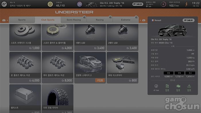 또한, 같은 튜닝 자체에 대한 수치를 PP로 보여주고 있어 마치 모바일 게임의 '전투력' 마냥 초보자 역시 자신 차량의 수준을 손쉽게 평가할 수 있어 진입장벽을 좀 더 낮추고 있다. 물론 좀 더 좋은 결과를 도출하기 위해서는 보다 꼼꼼한 튜닝이 필수지만, 초보자 입장에서는 PP 기준으로 날씨에 따른 타이어 정도만 제때 교체해 준다면 큰 무리 없이 즐길 수 있었다.