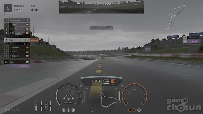 특히, 레이싱에 가장 영향을 미치는 요소 중 하나인 '비'가 상대적으로 뚜렷하게 표현되지 않는다는 느낌을 받았다. 경기 중 조금씩 비가 내리다 후반 주회에서는 비가 상당히 많이 오게 되는데, 비가 제대로 보인다기보다는 다른 차량의 물보라 등을 통해 비가 오는 것을 체감했다. 사실 먹구름이 끼어있는 만큼 이미 비가 오고 있다는 것을 알 수는 있지만, 비교적 물리 엔진에서 아쉬움이 남는 부분이었다.
