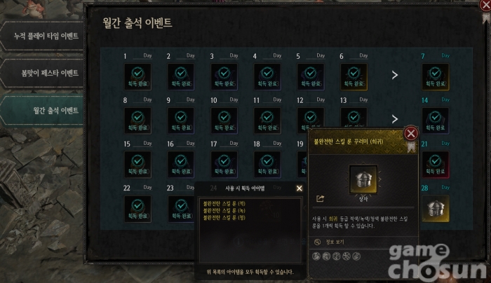 꾸준히 플레이 한다면 한 달에 한 번 희귀 스킬 합성 기회를 = 게임조선 촬영