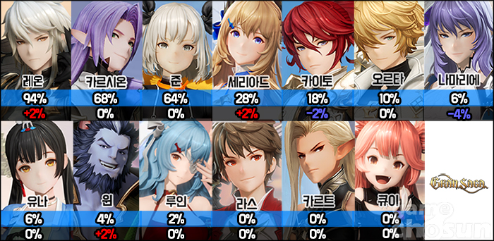 이번 랭킹에서 가장 재밌는 부분은 역시 랭커들의 캐릭터 선택률이다. 눈여겨볼 부분은 중-하위권을 가르는 '카이토'와 '오르타' 구간이다. 오르타의 선택률은 지난 랭킹과 마찬가지로 10%였지만, 비슷한 수준이었던 나마리에의 선택률이 4% 감소하면서 오르타가 캐릭터 선택률 5위에 들어섰다. 카이토의 선택률도 앞자리가 1로 바뀌면서 현상유지를 지켜낸 오르타의 주가가 오르고 있다.