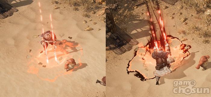 - 화염 장판 및 회오리 생성
