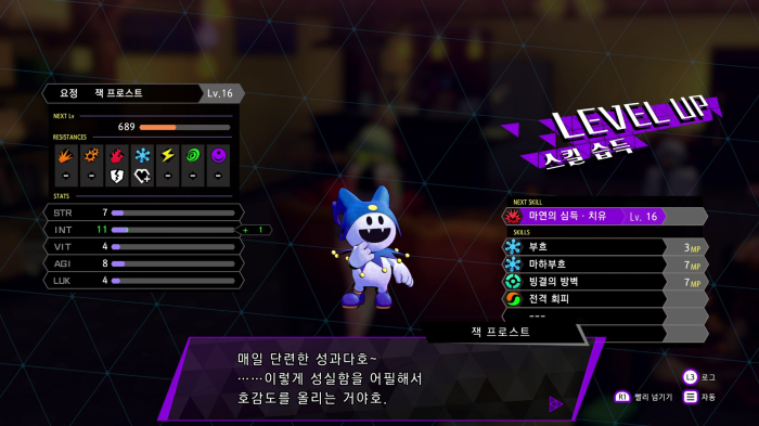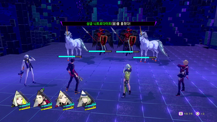 전투의 기본은 적의 약점을 찌르는 것. 적 악마에는 다양한 내성이 있고, 약점을 찌르면 많은 대미지를 주는 등, 전투를 유리하게 진행할 수 있다.