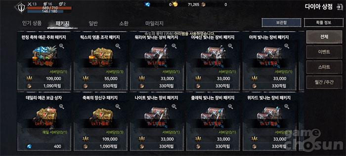 마리온이라고 해서 리니지의 '마법인형'과 동일한 소환수가 존재하고, 기본 장비 판매, 고성능 옵션의 유료 장신구를 판매하는 것도 동일합니다. 심지어 패키지 가격도 상당히 비슷합니다.