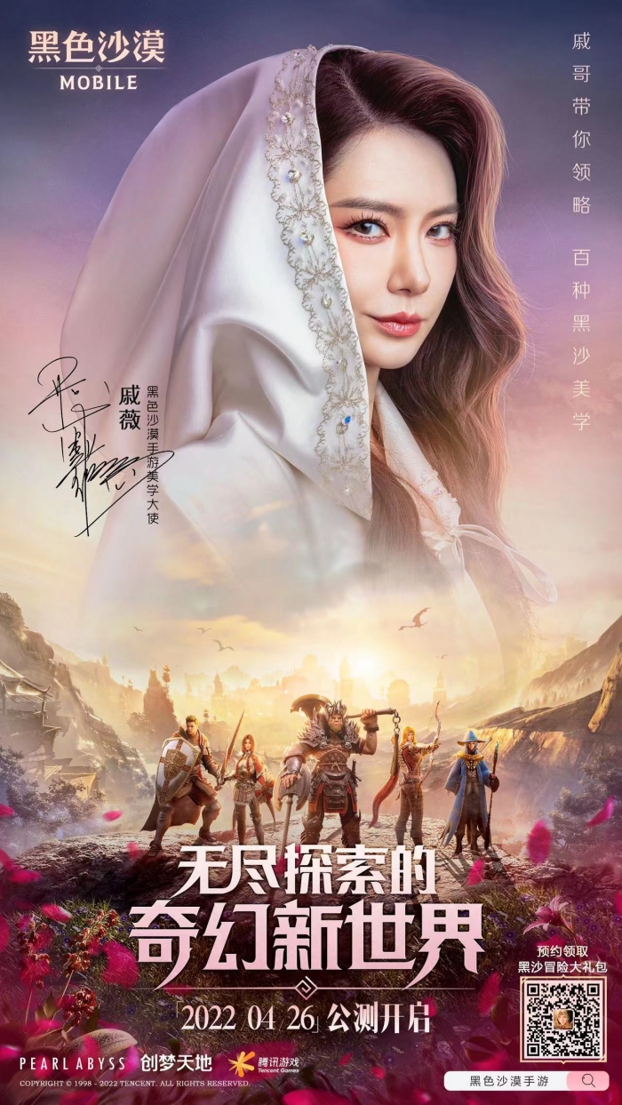 [자료제공 = 펄어비스] 펄어비스(대표 허진영)가 ‘검은사막 모바일’ 중국 서비스 공식 홍보대사로 중국 인기 영화배우겸 가수인 ‘치웨이’를 선정했다.