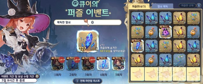 큐이의 퍼즐 이벤트는 일간 퀘스트와 주간 퀘스트를 통해 얻은 열쇠로 퍼즐판을 열어 무작위로 보상을 얻을 수 있는 이벤트다. 모든 퀘스트를 진행한다고 가정하면 하루에 열쇠 8개, 한 주에 25개 열쇠를 얻을 수 있다.