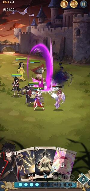 스토리를 진행하면서 특정 씬에서 전투를 치르고, 진행 단계에 따라 방치형 보상이 쌓입니다. 전투는 기본적으로 자동, 시간에 따라 회복되는 마나를 소모해 스크롤 마법을 사용할 수 있습니다.