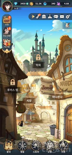 '마나돈나'에서 스크롤을 배우거나 강화할 수 있고, '루카스 랩'에서 각종 유용한 패시브 효과를 강화할 수 있습니다. 단순 스토리 외에 요일 던전, 결투장, 마왕의 탑 등 서브 컨텐츠도 존재하나 결국 5 vs 5 마주 보고 덱 싸움인 것은 크게 변하지 않습니다.