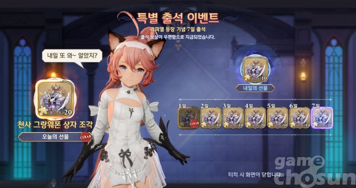 일주일 출석으로 라피엘 하나가 공짜로 들어오니 꼭 놓치지 말고 받아두자 = 게임조선 촬영