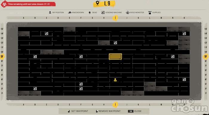 사이드뷰 형태로 게임이 진행되는 만큼, 맵은 여러개의 방이 층을 이뤄서 구성돼 있다. 또 각 방에 따라서 진입하는 위치와 빠져나갈 수 있는 위치가 상이하기에 맵을 자주 확인하면서 이동 루트를 짜야만 한다. 무턱대고 방을 이동하다보면 막다른 방에 다다를 수 있으며, 경쟁자에게 쫓기는 상황이나 독가스로 인해 구역이 차단될 경우 빠져나가지 못해 허무한 엔딩을 맞이할 수 있다.