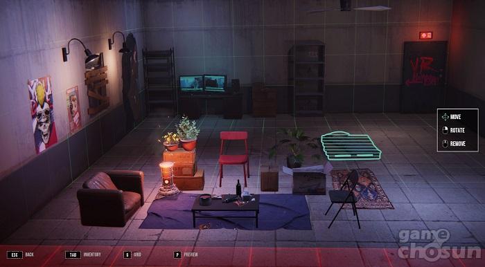 이외에도 대기실을 꾸미는 기능도 마련돼 있다. 플레이어의 방이라 할 수 있는 곳에 각종 의자와 탁자, 침대, 벽지, 선반, 화분 등을 놓으면서 인테리어가 가능하다. 따라서 데드사이드클럽이라는 게임 내에 자신만의 개성이 빛을 발하는 공간을 만들어낼 수 있다.