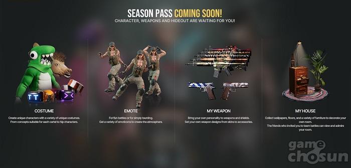 CBT 동안에는 게임을 플레이한 후에 지급되는 골드로 시즌 박스를 개봉할 수 있었으며, 해당 박스에서는 다양한 형태의 꾸미기 아이템을 얻는 것이 가능했다. 꾸미기 아이템은 캐릭터의 신체를 변경할 수 있는 얼굴형과 헤어스타일, 눈동자, 수염, 타투와 더불어 복장 개념의 모자, 안경, 마스크, 상의, 하의 등이 있다. 이외에도 네임플레이트도 존재한다.