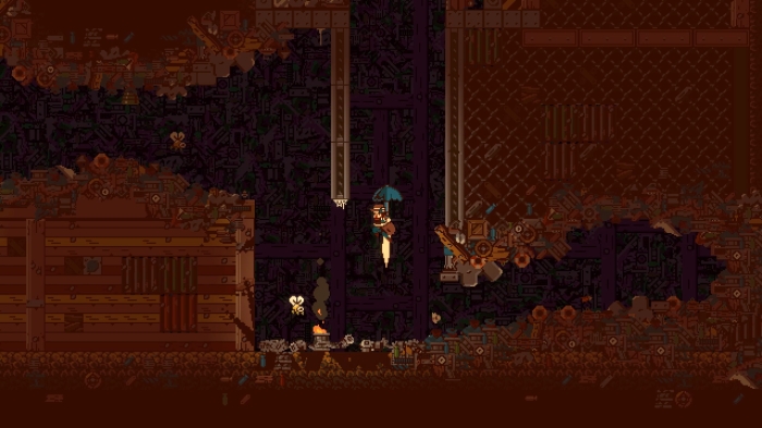 다양한 위치를 탐색하며 기괴한 캐릭터과 마주하는 횡스크롤 액션 전투를 만끽할 수 있으며, 주어진 건브렐라를 사용하여 글라이딩, 스윙, 대시, 다이빙을 하고 스크랩과 예비 부품을 수집하여 건브렐라에 다양한 탄종 등 업그레이드를 할 수 있다. 컬트 조직의 납치와 쓰레기 갱을 조사하며 혈흔으로부터 유령이나 괴물 같은 것들이 실체화하는 미스테리와 맞닥뜨리게 된다.