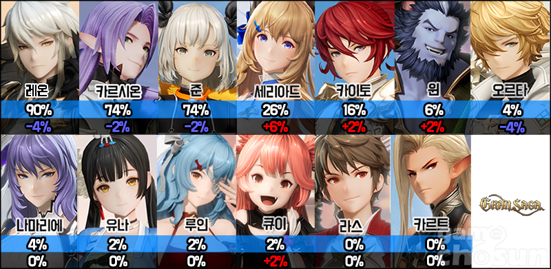결투장 대세 파티 '레온, 카르시온, 준' 파티는 여전히 오차 범위 내에서 준수한 점유율을 유지하고 있다. 레온이 오랜만에 90%에서 턱걸이를 하고 있지만, 워낙 독보적인 입지를 자랑하는 만큼 급격한 하락은 예상하기 어렵다.