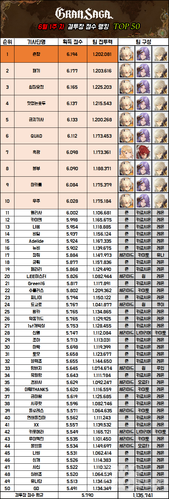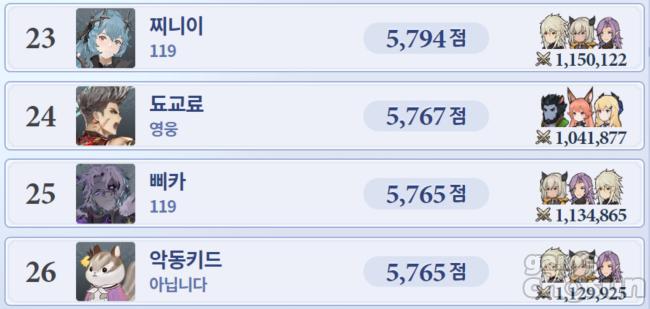 치열했던건 1위만이 아니다. 랭커들의 획득 점수가 전반적으로 상승했는데 서로 간의 차이는 크지 않아 치열했던 순위 싸움을 간접적으로 느끼게 해줬다. 이번 랭킹의 평균 획득 점수는 지난 랭킹 대비 132점 상승한 5,790이다.