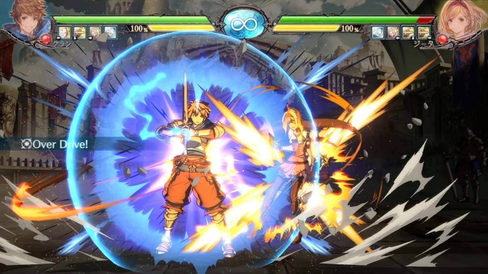오의 게이지를 100% 소비해 다양한 강화 효과를 얻을 수 있는 액션. 발동 시 자신의 주위로 방출한 충격파는 상대가 가드 상태라도 멀리 날려버리므로, 긴급 회피 수단으로도 효과적입니다. 또한, 오버 드라이브 중에는 언제든 오의나 해방 오의를 발동할 수 있는 것도 특징이며, 사용 후 오버 드라이브가 종료됩니다. 라운드당 한 번만 사용할 수 있어, 배틀 중 어느 타이밍에 발동시킬지가 중요합니다!