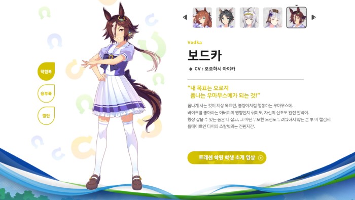 어딘가 소년 같은 느낌의 보드카 = 우마무스메 공식 홈페이지 갈무리