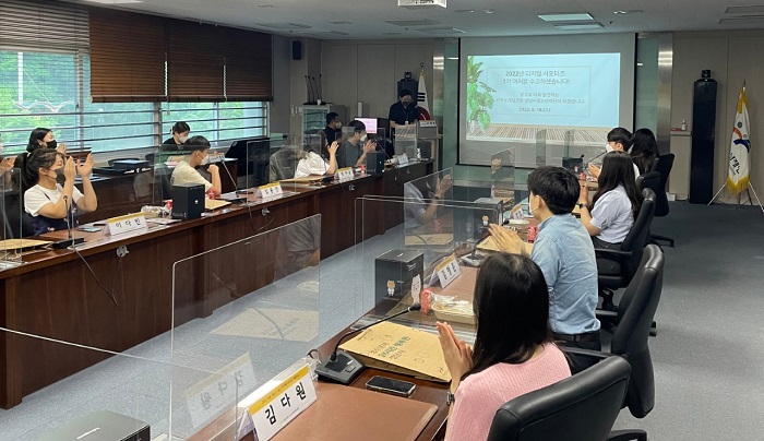 18일 진행된 해단식은 카카오게임즈 조계현 대표와 성남시청소년재단 진미석 대표의 축사 영상으로 시작됐다. 이어, 활동기간 동안 금호행복시장 홍보를 위해 서포터즈가 제작한 ▲영상 ▲디지털 맵 ▲캐릭터 ‘금덕이’를 비롯해 시장 활성화를 위해 개최한 오프라인 행사 ‘금호 행복데이’ 성과물을 함께 감상하는 시간을 가졌다.