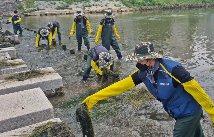 이날 활동은 건강한 하천 생태계를 지키기 위한 환경 정화 프로그램을 중심으로 펼쳐졌다. 봉사단원들은 물속에 직접 들어가 생태계를 위협하는 유해식물과 녹조를 제거하는 정화 작업과 산책로 주변의 쓰레기와 폐기물을 수거하는 ‘에코 플로깅’도 병행하며 하천 주변 환경을 정비했다.