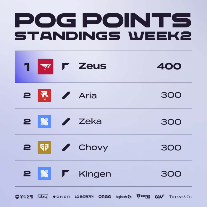 DRX는 미드 라이너인 '제카' 김건우가 팀에 녹아들면서 상승세를 타고 있다. 스프링에도 라인전을 준수하게 수행한다는 평가를 받았던 김건우는 서머 들어 플레이 메이킹 능력이 나아지면서 팀을 승리로 이끌고 있다. 높아진 팀 기여도에 힘입어 김건우는 POG(Player Of the Game) 포인트 300점을 획득, 공동 2위에 랭크됐다.