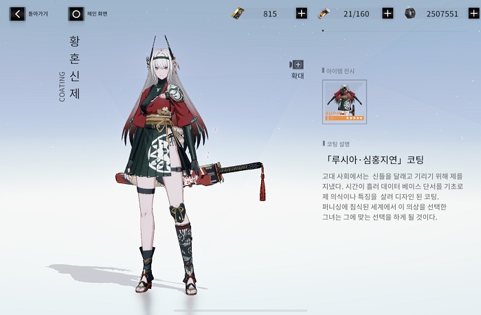 황혼신제 스킨은 기존 루시아·심홍지연의 한정 스킨으로 일반 스킨과 다르게 게임 내 이펙트도 변화하는 특징이 있다. 또한, 심홍지연 자체의 뛰어난 성능과 맞물려 매력적인 외형으로 큰 인기를 끌어왔다.