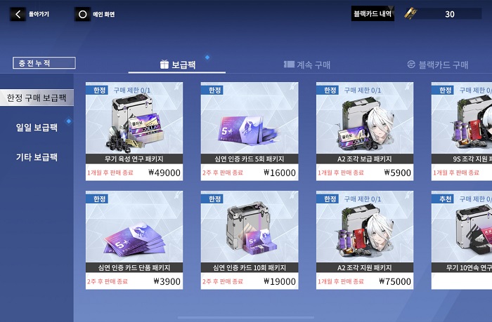 한 가지 눈여겨볼 점은 이번 심연 인증 카드 패키지는 구매 횟수 제한이 없다는 점이다. 비록 황혼신제 이벤트 연구는 50회 밖에 할 수 없지만, 추가로 구매해둔 심연 인증 카드는 기본 캐릭터 연구권으로 변경돼 보다 저렴하게 연구를 시도할 수 있다. 비록 S등급 픽업 이벤트가 아니라 특정 S 등급을 노리기는 어렵지만, 여러 캐릭터의 등급업을 노린다면 괜찮은 패키지가 된다.