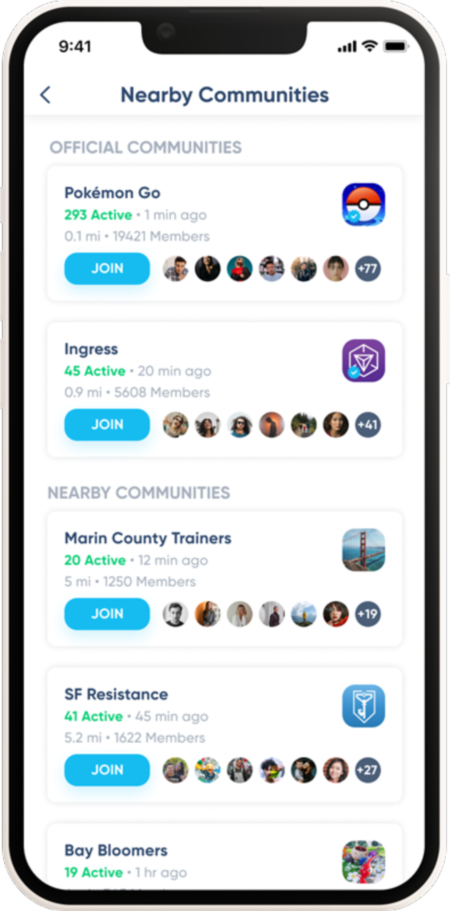 특히 핵심 기능 중 하나인 ‘커뮤니티’ 기능은 근처 지역 커뮤니티를 확인해 다른 플레이어를 찾거나 새로운 커뮤니티에 가입해 이벤트에 함께 참여할 수 있어 지역 소셜 앱의 역할도 수행하게 된다.