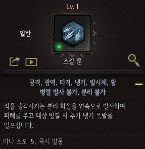 냉각 화살은 독성불꽃과 마찬가지로 일반 합성 스킬이다. 초창기부터 오한과 빙결을 이용한 안정성 때문에 관심을 받던 스킬이긴 하지만, 보스전에서는 빙결이 걸리지 않아 여러모로 손해를 보게 돼 큰 인기를 끌지는 못한 스킬이었다.