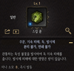 언디셈버 초창기에는 독 스킬이 실명 스킬 룬을 이용할 수 있어 생존에 유리했기 때문에 활용하는 추세였으나, 현재는 실명을 굳이 사용하지 않고 딜적 측면에서만 봐도 강력한 효율을 보여준다. 원형으로 퍼지는 특성 상 한쪽 방향으로만 발사되는 스킬에 비해 훨씬 매핑이 유리하고, 아이템 역시 대충 원소 피해만 입어도 준수한 성능을 보여주기 때문에 육성에 상당히 유리한 스킬이다.
