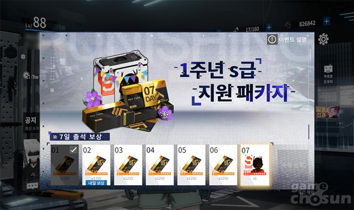 1주년 S급 지원 패키지 보상 7일차에서는 S급 구조체 선택권을 획득할 수 있다. = 게임조선 촬영