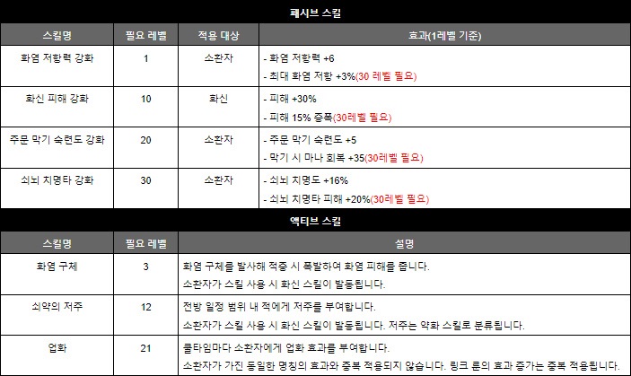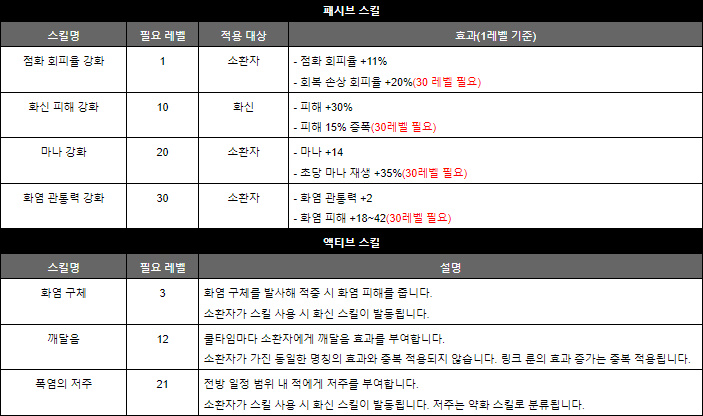 패시브 스킬로 화염 관통력과 피해를 끌어올린 뒤 액티브 스킬 '폭염의 저주'로 또 한 번 적의 화염 저항을 깎아내릴 수 있다. 저주 효과에 점화 확률 증가도 있어 화염구 빌드라면 스킬 성능 향상에 모든 옵션을 동원할 수 있다.