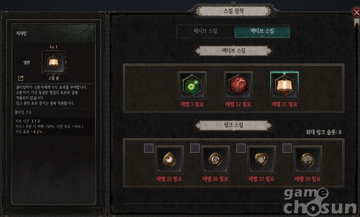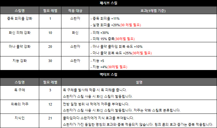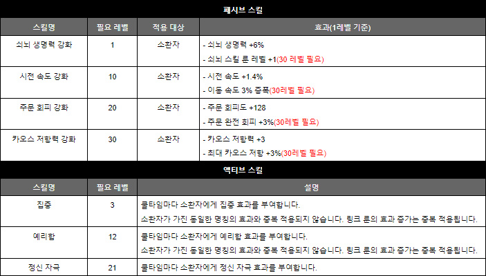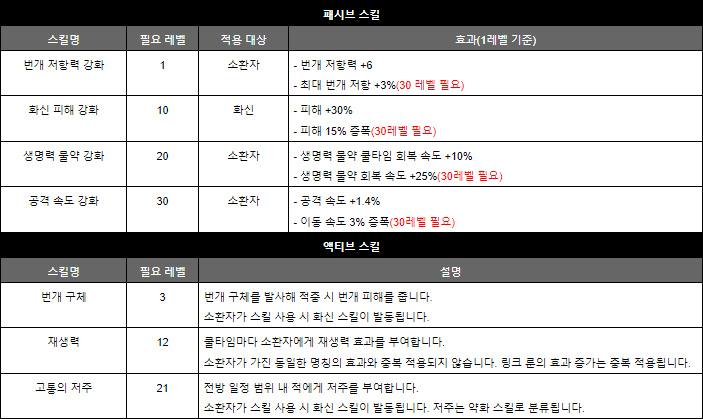 치명도와 치명타 피해를 큰 폭으로 올려주는 액티브 스킬 '예리함'도 소환수 빌드가 아니라면 누구나 활용할 수 있는 상당히 범용적인 스킬이다.