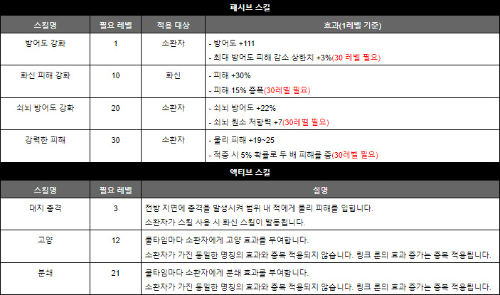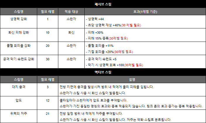 다만 직접적인 화력 증강은 패시브나 액티브 중 한 곳에서만 끌어올 수 있다. 패시브에 있는 화력 증강 효과가 하수인에 한정되며 그마저도 스킬 레벨 증가로 간접적으로 올려준다.