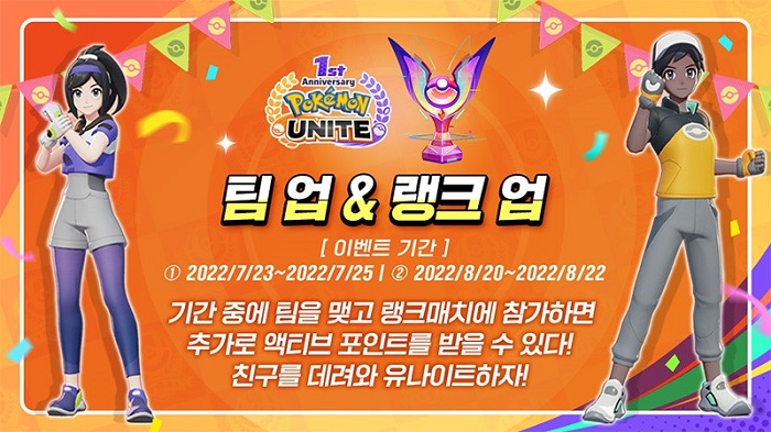 포켓몬 유나이트가 7월 21일(목)에 Nintendo Switch 버전 배포 개시로부터 1주년을 맞이하며,이를 기념하여 게임 내외에서 다양한 업데이트와 캠페인이 시작된다. 1주년 기념 PV가 포켓몬코리아 공식 YouTube 채널에 공개되었으며, 스마트폰 버전 배포를 개시한 9월 이후에도 이벤트가 준비되어 있다고 하니 기대해보자.