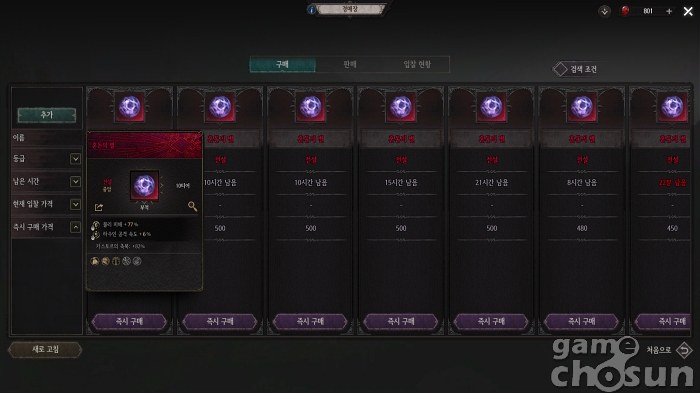 10티어 부적으로 취급되는 '혼돈의 별'의 매물이 많이 풀려있다 = 게임조선 촬영