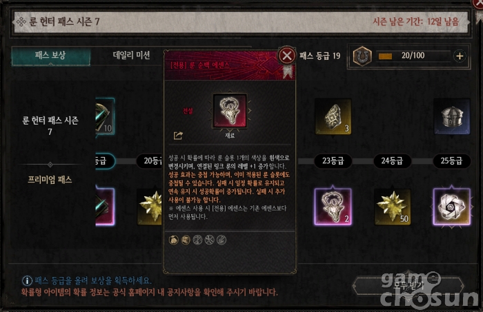 각종 이벤트나 패스로 푸는 룬 순백 에센스를 빠짐 없이 챙기자 = 게임조선 촬영