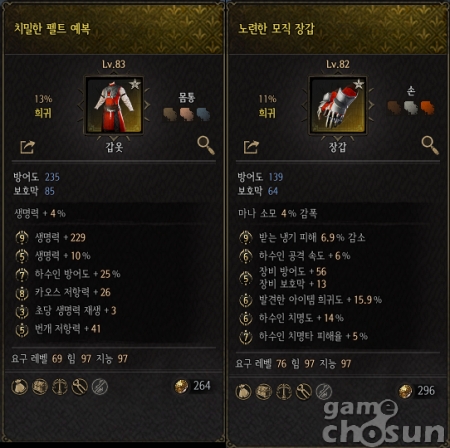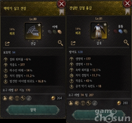 한 가지 방어 옵션만 올려주던 기존 방어구 = 게임조선 촬영