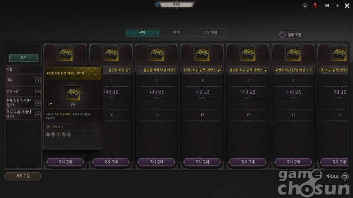 유저간 거래가 가능해진 성장 재료 = 게임조선 촬영