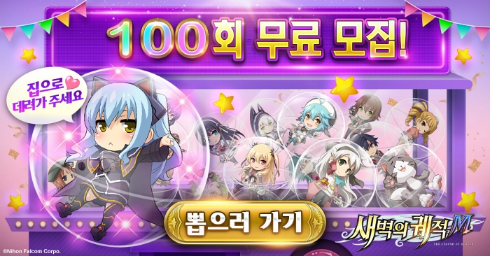 금일부터 3대 마켓에서 선을 보인 ‘영웅전설:새벽의 궤적M’은 정식 출시를 기념하여 다양한 이벤트를 시작했다. 간단하게 해결할 수 있는 퀘스트만 수행하면 최대 100회까지 뽑기를 할 수 있는 100회 무료 뽑기 이벤트를 진행하고, 2일 연속 로그인 시 ‘알핀 라이제 아르노르’, 7일 로그인 시 ‘요슈아 브라이트’를 받을 수 있는 출석 이벤트를 실시한다. 게임에 접속하는 모든 이용자는 SR 캐릭터 모집권을 기본적으로 얻을 수 있다.