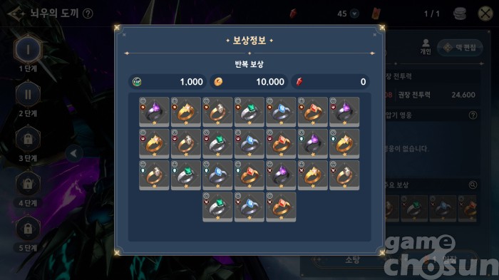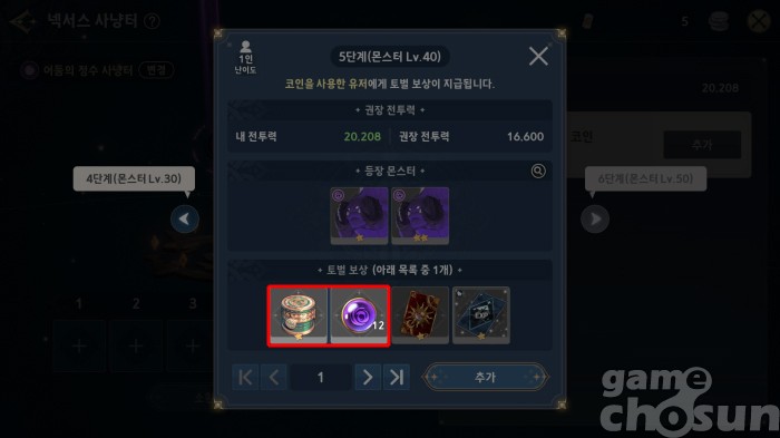 핵심 획득 아이템: 완제품 장비, 장비 경험치 재료, 넥서스 코인
