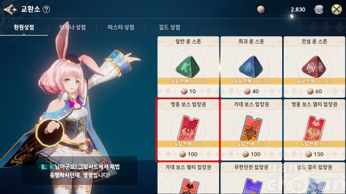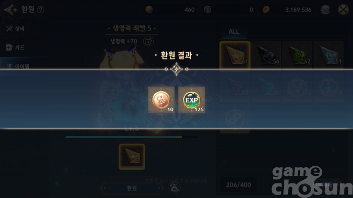 이렇게 얻은 환원 주화를 투자할 곳은 바로 '영웅 보스 입장권'이다. 영웅 보스에선 속성별 영웅석과 영웅 무기조각, 그리고 영웅 성장에 필요한 경험치 키드와 승급 카드를 얻을 수 있다. 이 영웅 성장 재료 카드를 사용해 빠르게 영웅들을 성장시키고, 스킬과 특수기를 해금해 상위 콘텐츠로 진입하는 것이 핵심이다. 게다가 지난 업데이트로 영웅 보스를 클리어할 때마다 골드를 얻을 수 있어서 한층 더 빠른 성장이 가능하게 되었다.